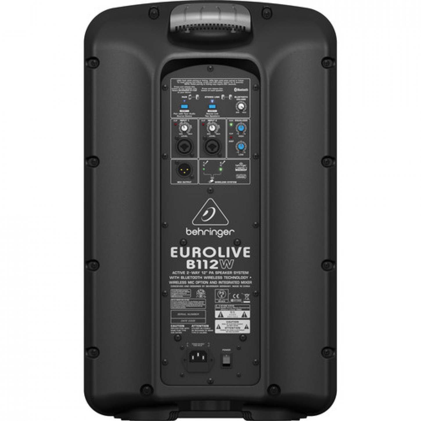 A Behringer EUROLIVE B112W de 12" é um sistema de PA ativo amplificado Classe-D capaz de até 1.000 watts de potencia. Possui uma variedade de opções de conexoes, incluindo entradas XLR / TRS duplas de microfone / linha, áudio de transmissão Bluetooth, e uma porta USB 3.0 para conectar um sistema de microfone sem fio Behringer ULM opcional. O B112W possui um mixer de microfone / linha integrado de 2 canais e pode ser conectado a um segundo B112W opcional sem fio via Bluetooth e sua saída XLR Mix.