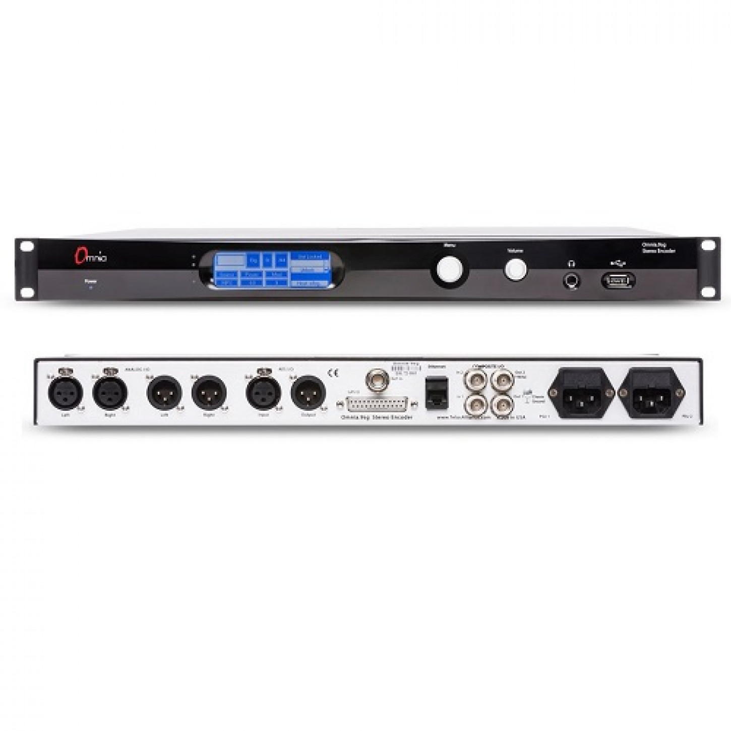 • Duas entradas compostas, duas saídas compostas. Um processador de backup “quente” pode ser colocado em loop através do Omnia.9sg e ser automaticamente e imediatamente colocado no ar caso o 9sg falhe ou perca energia; Também possibilita a utilização de um codificador RDS externo, se desejado.
