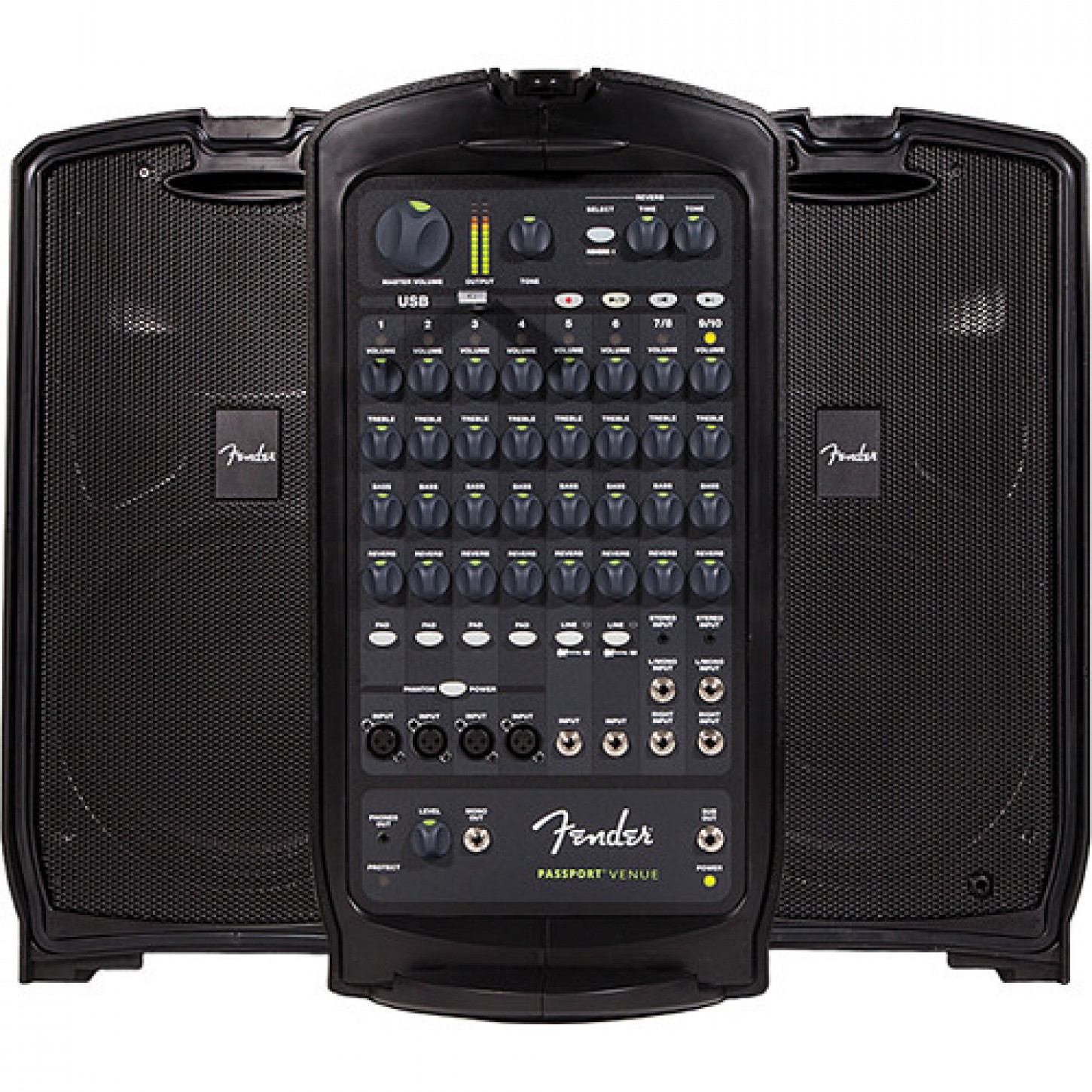 O Passport Venue da Fender é um sistema de áudio portátil autônomo que fornece tudo o que é necessário para atender a um público de pequeno a médio porte. A facilidade de operação da unidade é perfeita para os leigos que precisam de qualidade com funcionalidade simples. O passaporte pode ser transportado como uma mala e, com uma simples virada das fendas do armário, o sistema está pronto para a instalação.