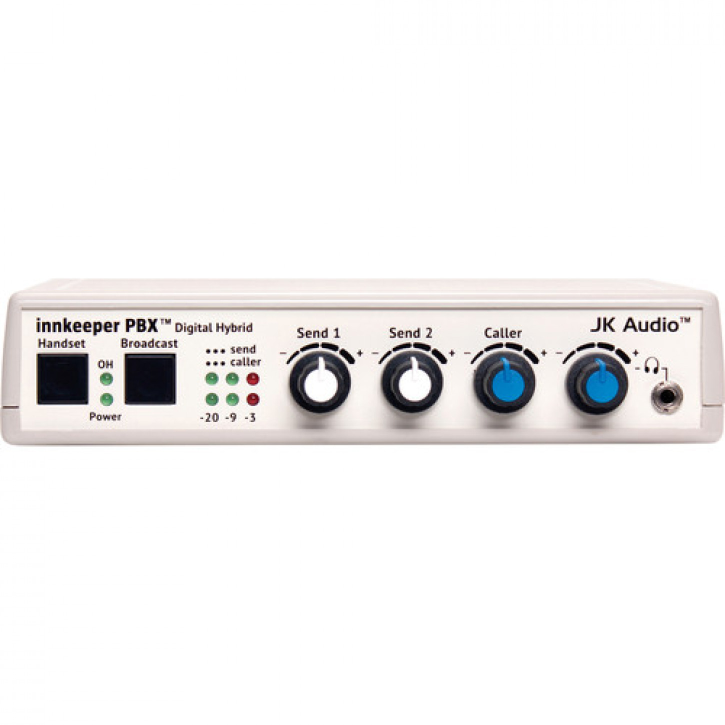 O JK Audio Innkeeper PBX é uma interface profissional de áudio / telefone que converte qualquer PBX multi-linha, ISDN ou telefone analógico em um console de broadcast, estilo talk-show. O Innkeeper PBX conecta-se entre o telefone e a base do telefone, as chamadas recebidas podem ser selecionadas usando o telefone.