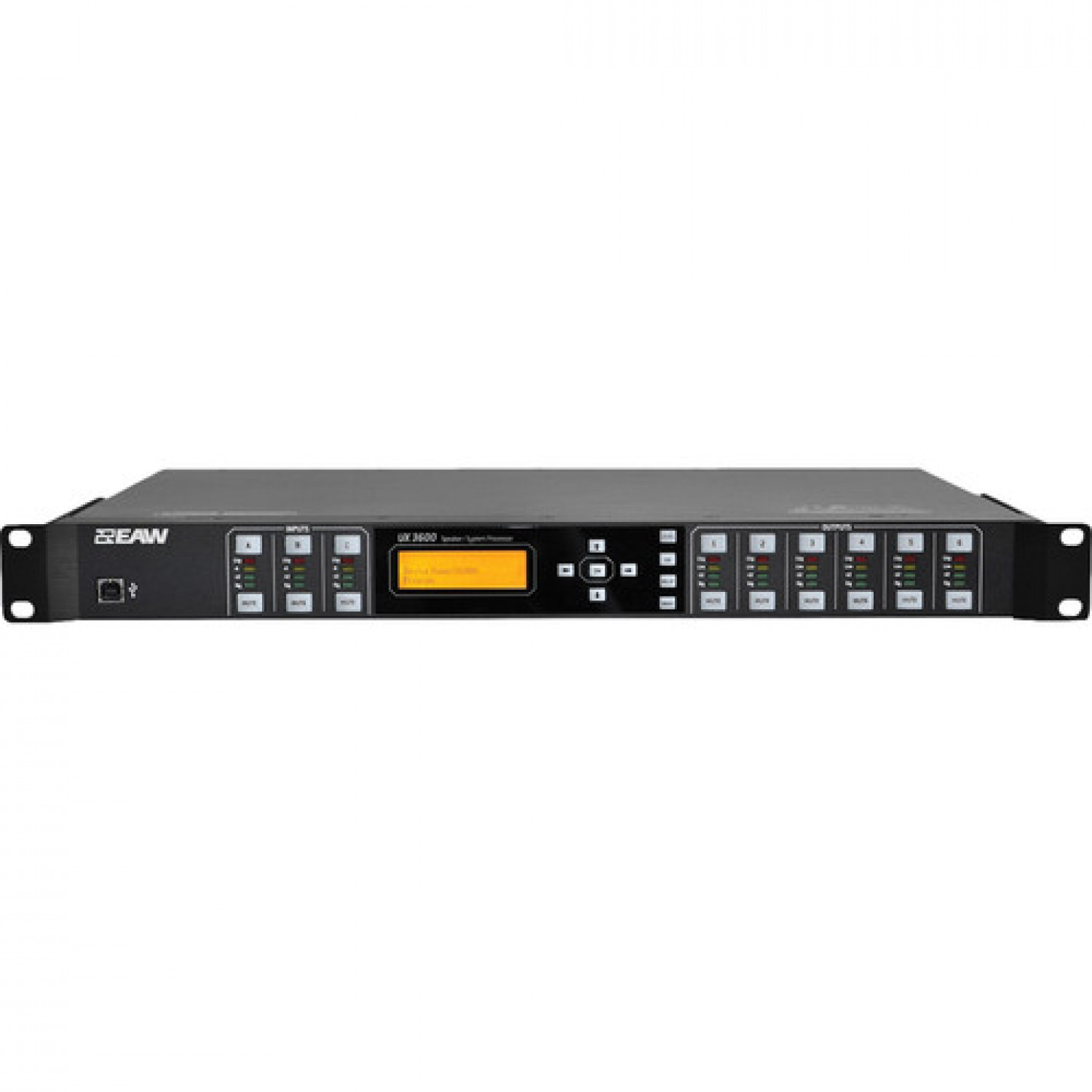 O processador de sinal digital EAW UX3600 é um processador DSP de 1 "rack de 19" projetado para gerenciamento de alto-falante PA em aplicações de som em turnê, instaladas e ao vivo. A unidade possui três entradas analógicas e seis saídas analógicas em conectores XLR balanceados e fornece algoritmos personalizados para configuração EQ filtros, atrasos, níveis de ganho, polaridade e crossovers.O design de processamento de sinal fornece controle extensivo do usuário e leva em conta fatores como temperatura ambiente ao calcular os tempos de atraso e umidade ao equalizar para perda de ar para acomodar a maneira que a velocidade do som mudanças sob diferentes condições ambientais.