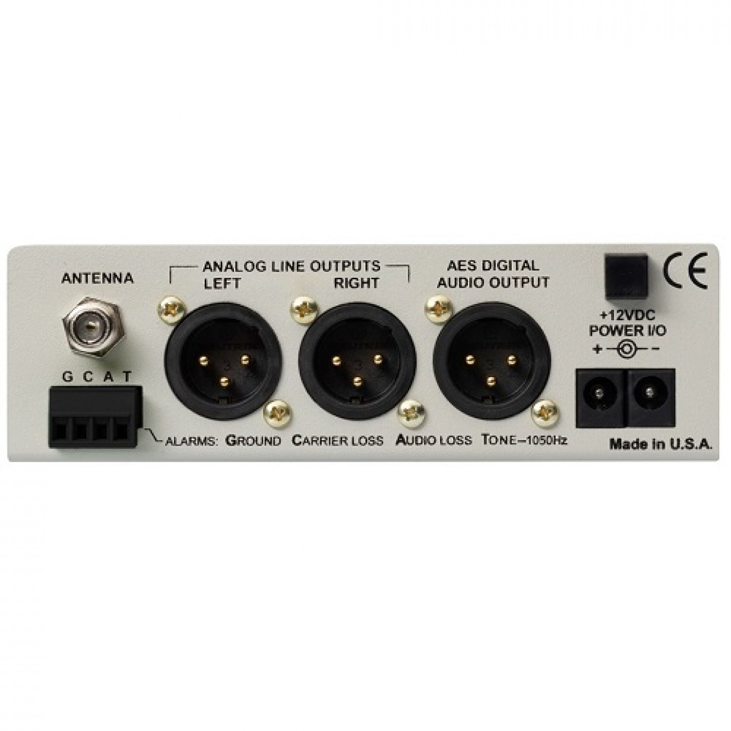 • Saídas de alarme para sinal baixo, perda de áudio, tom de alerta de 1050Hz