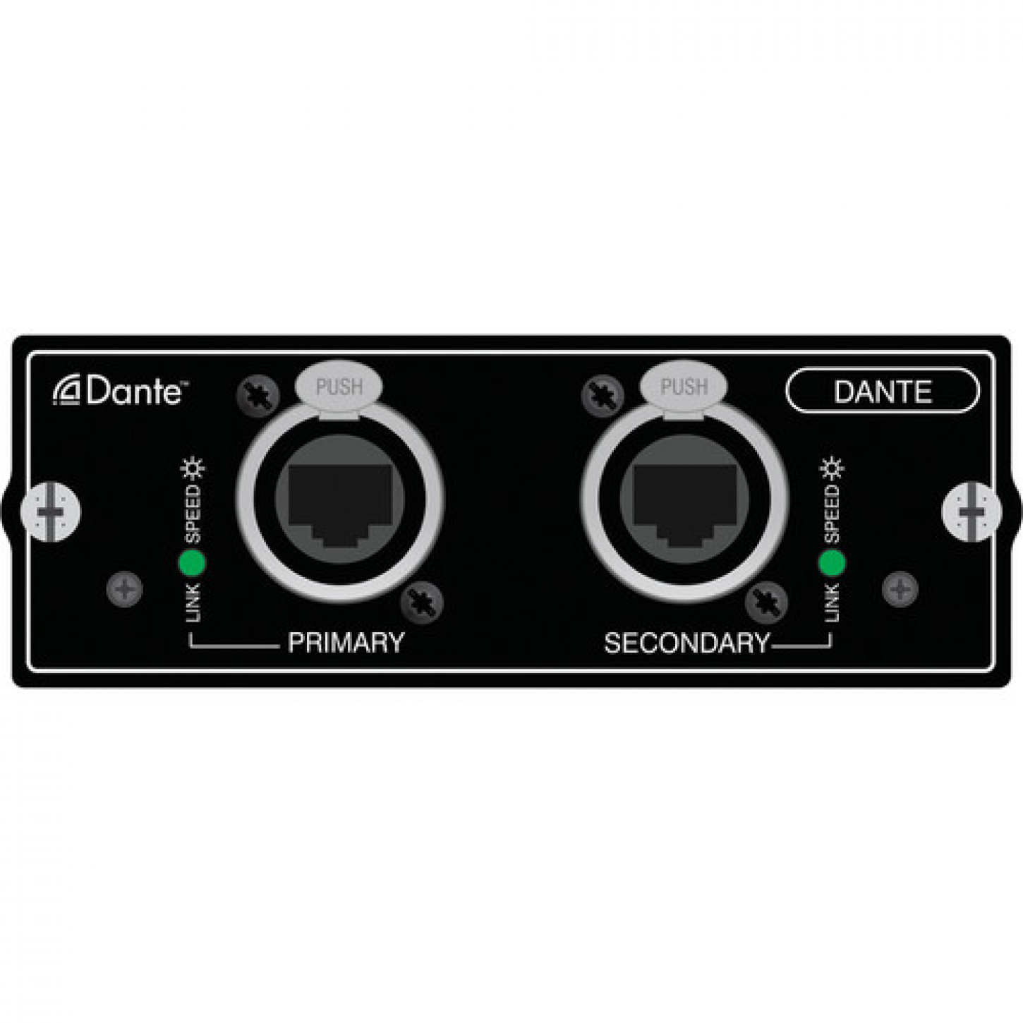 Além das portas Dante Ethernet primárias e secundárias da placa, o dispositivo também inclui um conector de saída de wordclock BNC que permite que a entrada de wordclock do stagebox ou do rack local seja acionada pelo relógio da rede, se exigido pela configuração de relógio do sistema geral.