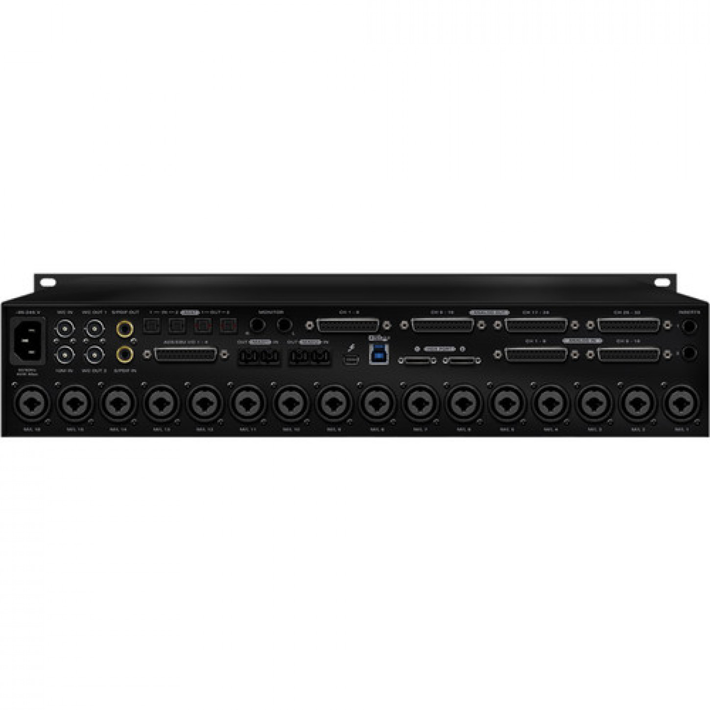 - Streaming simultâneo de áudio de 24 bits / 192 kHz via HDX, USB 3.0, Thunderbolt, MADI, ADAT, S / PDIF, AES / EBU
